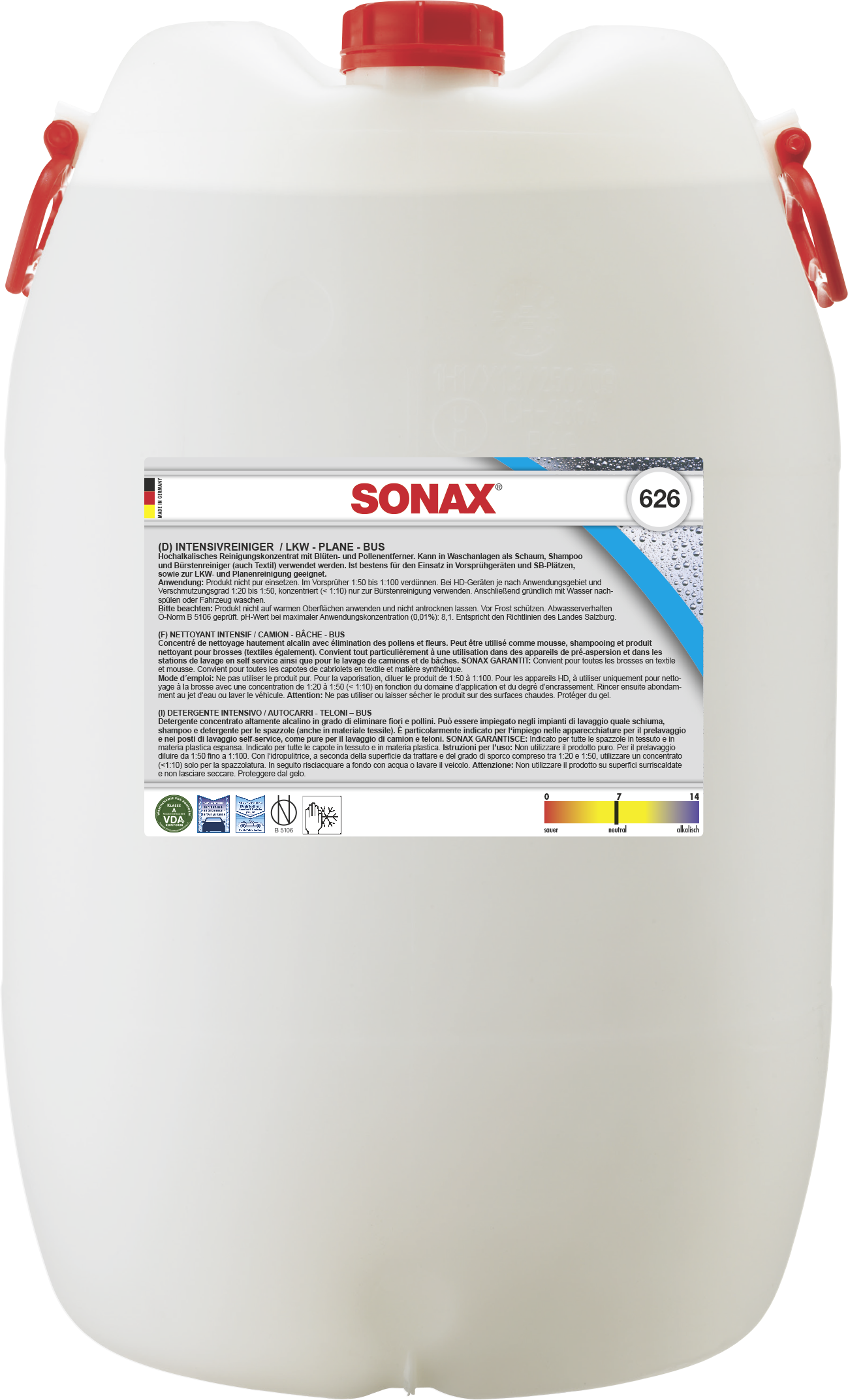 Izrazito alkalni koncentrat za temeljito uklanjanje najtvrdokornije prljavštine. Vrlo djelotvoran kod uklanjanja nečistoća organskog porijekla, kao što su ulje, masnoća i proteini (insekti, smola). Idealan za čišćenje kamiona i cerada, kao i za čišćenje spremnika i fasada. Pogodan i za čišćenje poljoprivrednih, šumarskih i građevinskih strojeva. Može se koristiti i kao sredstvo za čišćenje četki u automatskim autopraonicama, kao i za čišćenje naplataka. pH 13.
