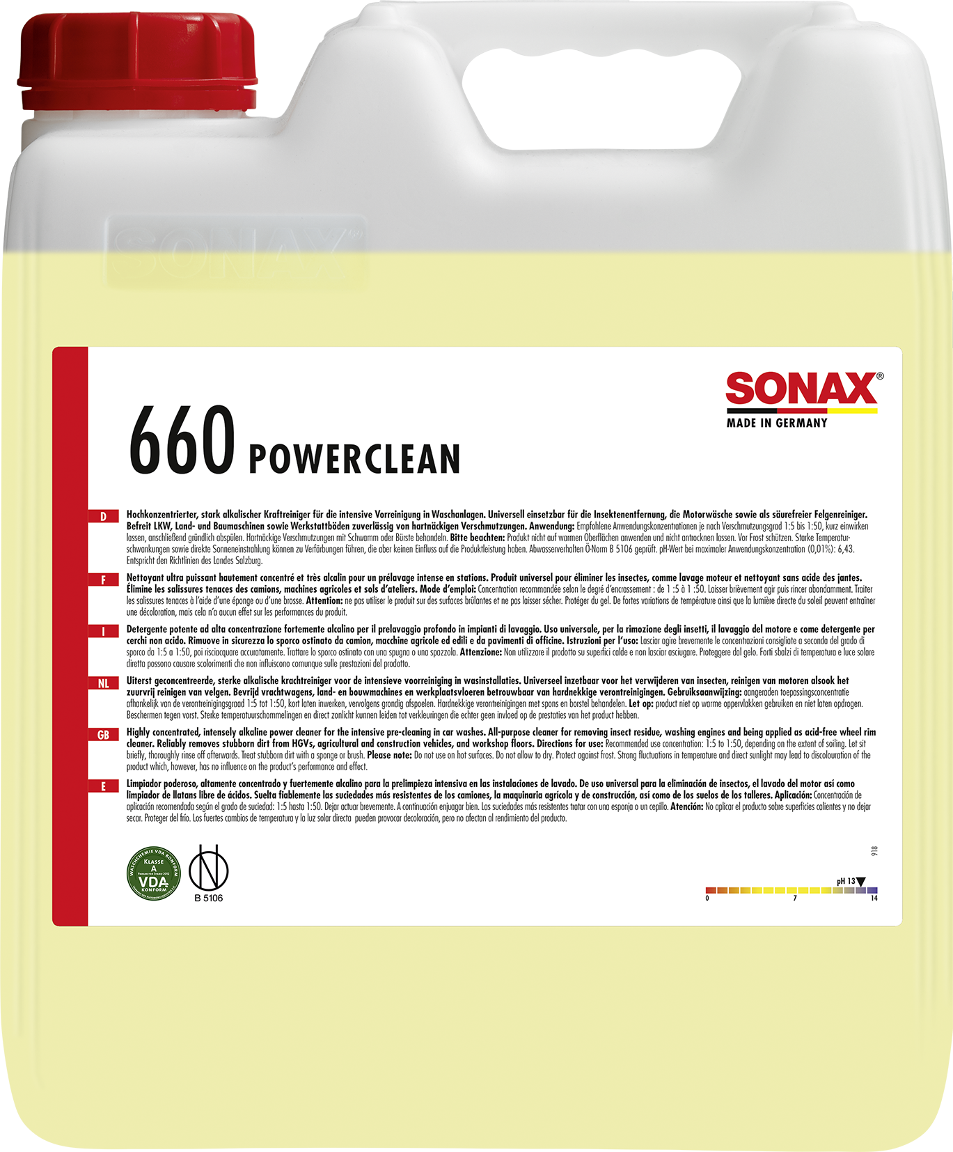 Alkalni koncentrat za snažno pretpranje u automatskim i samoposlužnim autopraonicama. Bez NTA i fosfata. Brzo djeluje i lako se ispire. Prikladan i kao sredstvo za čišćenje naplataka bez kiseline, za čišćenje četki za pranje i gospodarskih vozila. pH 13,5.