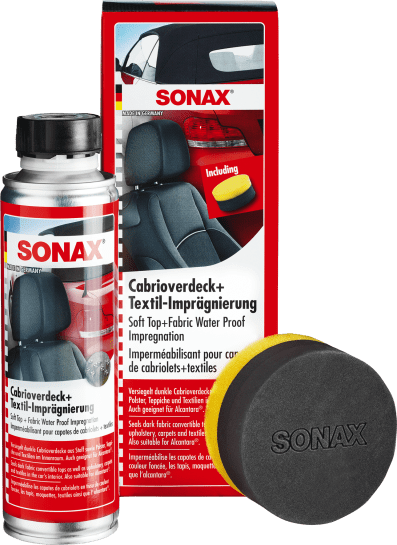Sredstvo za pečaćenje i impregnaciju platnenih krovova cabrioleta. Sjajno pečati, posebno nabore i šavove. Osvježava boju i štiti od ponovnog zaprljanja. Također, štiti i impregnira tekstil u unutrašnjosti. Sprečava prodor nečistoće i vlage u sjedala izrađena od tkanine i alcantare, tepiha i tekstila. Proziran i stoga prikladan za sve boje. S praktičnim dozatorom za pjenu i spužvicom za ravnomjerno nanošenje.