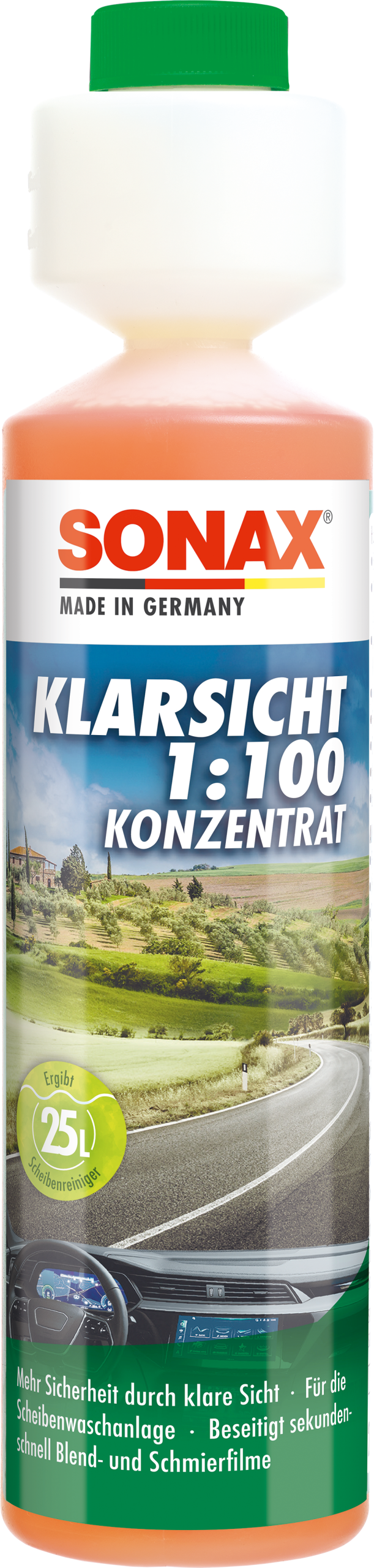 Visoko koncentrirani dodatak za pranje vjetrobranskog stakla tijekom ljetne sezone – bočica od 250 ml dovoljna je za pripremu do 25 l gotove tekućine. Učinkovito uklanja insekte, ulje, čađu, silikon i neugodne filmove koji uzrokuju odsjaj i mrlje, osiguravajući maksimalnu vidljivost bez tragova. Kompatibilan je s plastikom – ne uzrokuje pukotine, zamagljivanje leća prednjih svjetala ili oštećenja na modernim LED, Matrix i XENON svjetlima. Pogodan je i za vozila s mat lakom ili folijama, kao i za nove tehnologije brisača i mlaznica ventilatora. Zahvaljujući učinku protiv kamenca, pogodan je i za miješanje s tvrdom vodom. Ostavlja svjež miris za ugodnu i osvježavajuću vožnju.