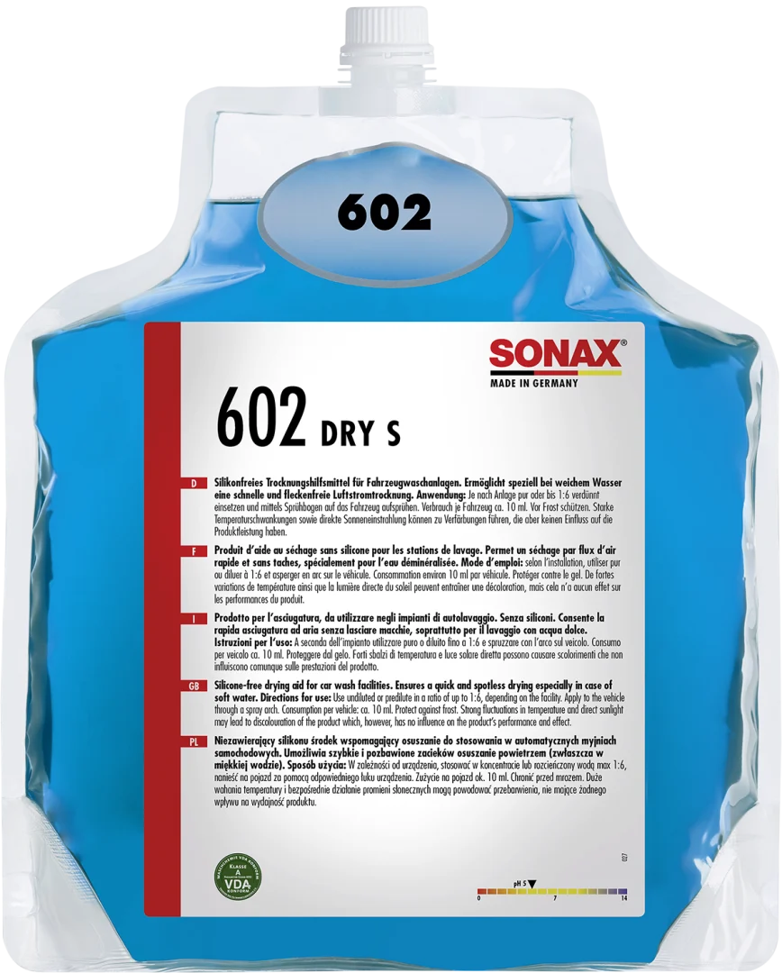 Sredstvo za sušenje posebno pogodno za meku vodu. Daje rezultate bez mrlja na laku i staklima, čak i u sustavima s kratkom zonom sušenja. Štiti i proizvodi zadivljujuće duboki sjaj. Bez hidrogenkarbonata i silikona. pH vrijednost 5,5
